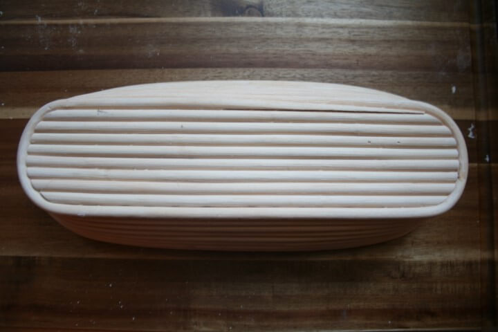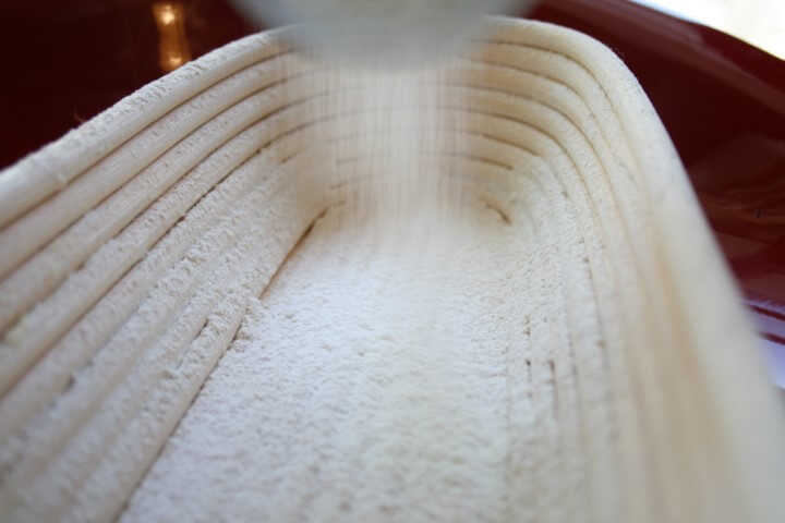 - לנקות קלות עם מברשת את כל הסלסלה ולזרוק את שאריות הקמח שיצאו ע"י דפיקה זהירה של הסלסלה בצורה הפוכה מעל שולי השיש. אפשר ורצוי להשאיר מעט קמח בין חתיכות הקנים בכדי שיעזרו בשימוש הבא.